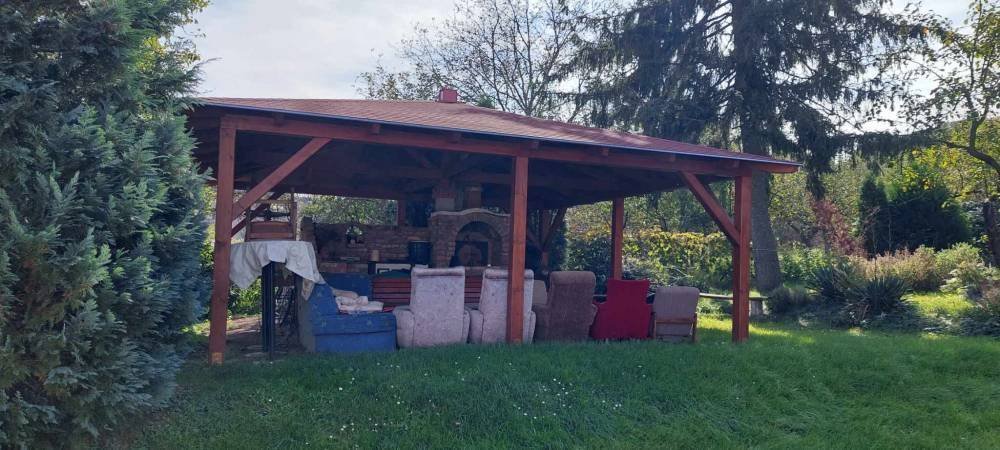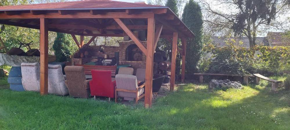 Wohnfläche: 110 m² + 17 m² Terrasse + 60 m² Scheune (Doppelgarage) + 40 m² Gartensitzbereich mit Ofen.