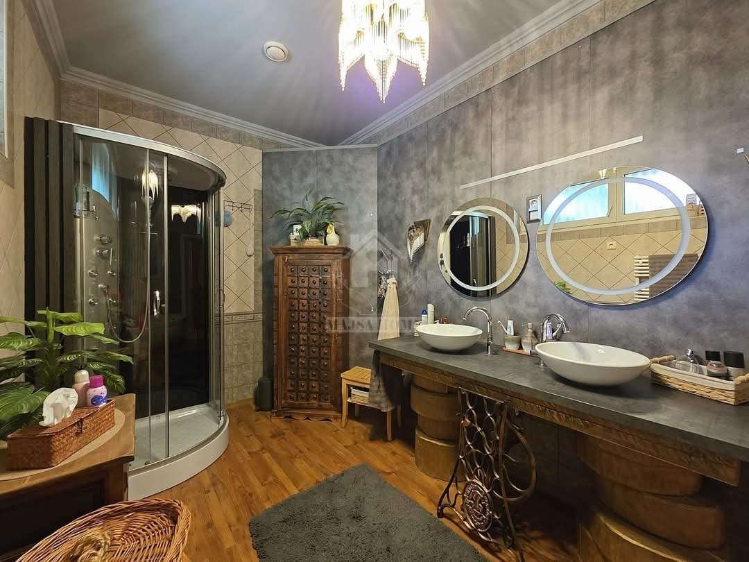 Darüber hinaus gibt es eine 45 m² große Garage mit zwei Stellplätzen und Zugang von der Straße, eine 45 m² große überdachte Terrasse sowie ein aus zwei Räumen bestehendes Lagergebäude im Hof, in dem in der Nähe des Gartenpools eine Dusche und eine Toilette eingerichtet wurden.