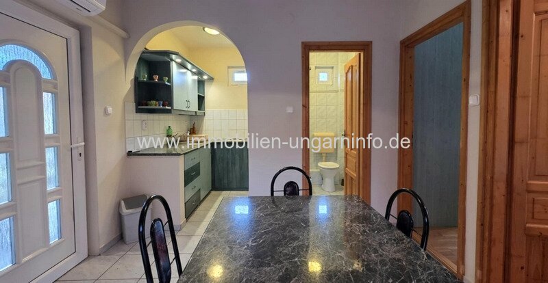 Lage: auf einem Hügel in Zalakaros, über eine asphaltierte Straße erreichbar, die letzten 100 m sind eine Privatstraße (nur für Anwohner). In einer grünen Umgebung, nur wenige Gehminuten vom Thermalbad entfernt.