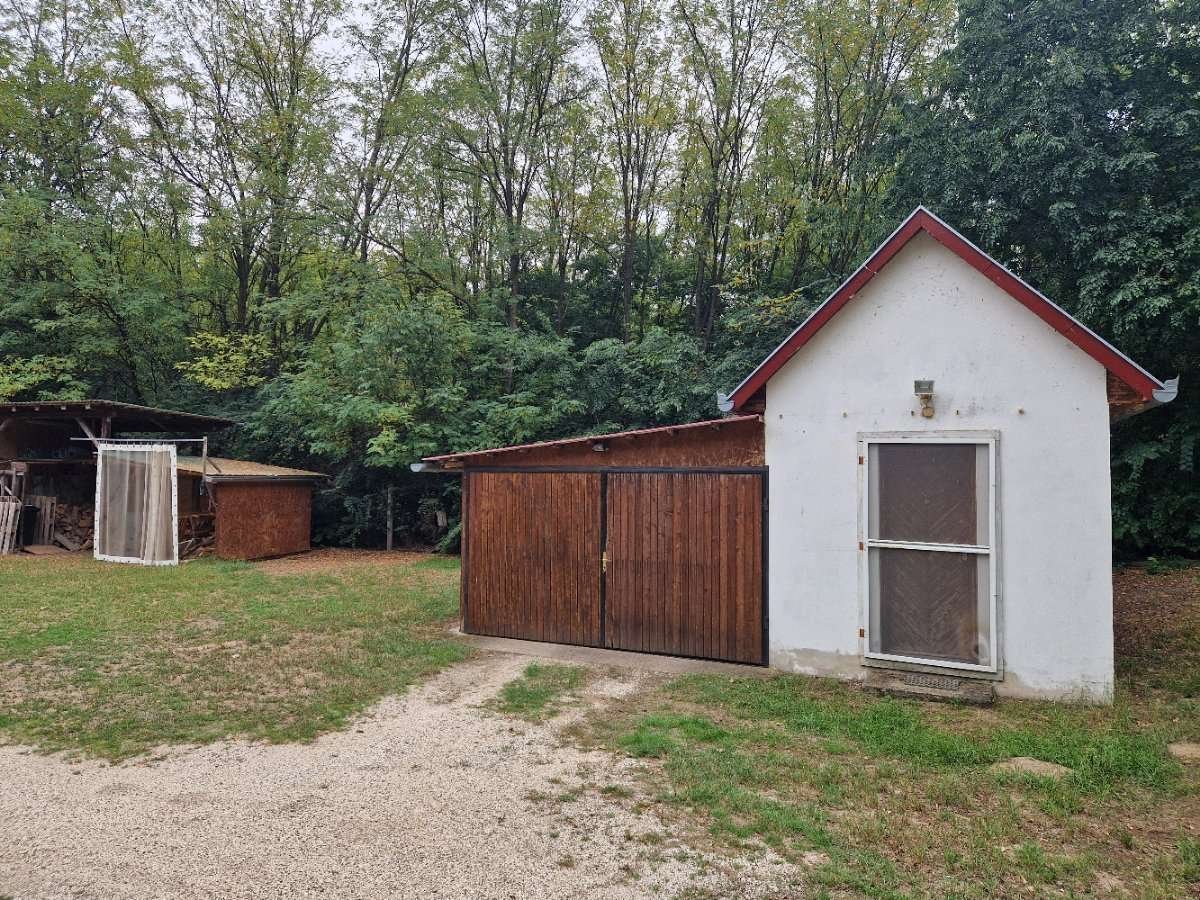 Das Hauptgebäude ist 90 m² groß, dazu kommen zwei Nebengebäude, zwei Garagen und ein Keller!