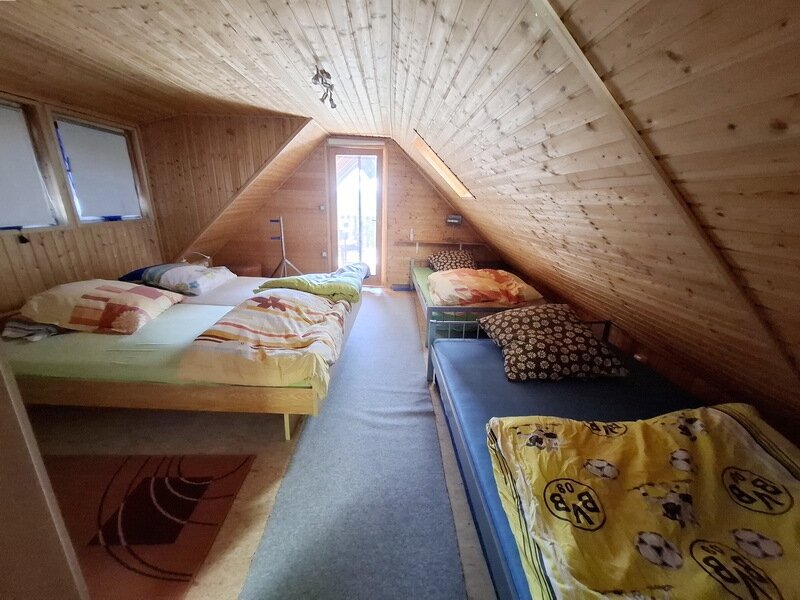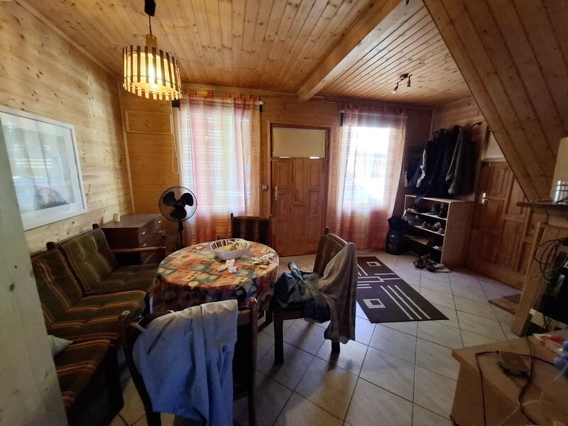 • Zweigeschossiges, isoliertes Holzhaus mit einer Grundfläche von 76 m² (6,3 x 12 m). Inklusive Obergeschoss beträgt die Gesamtfläche ca. 120 m².