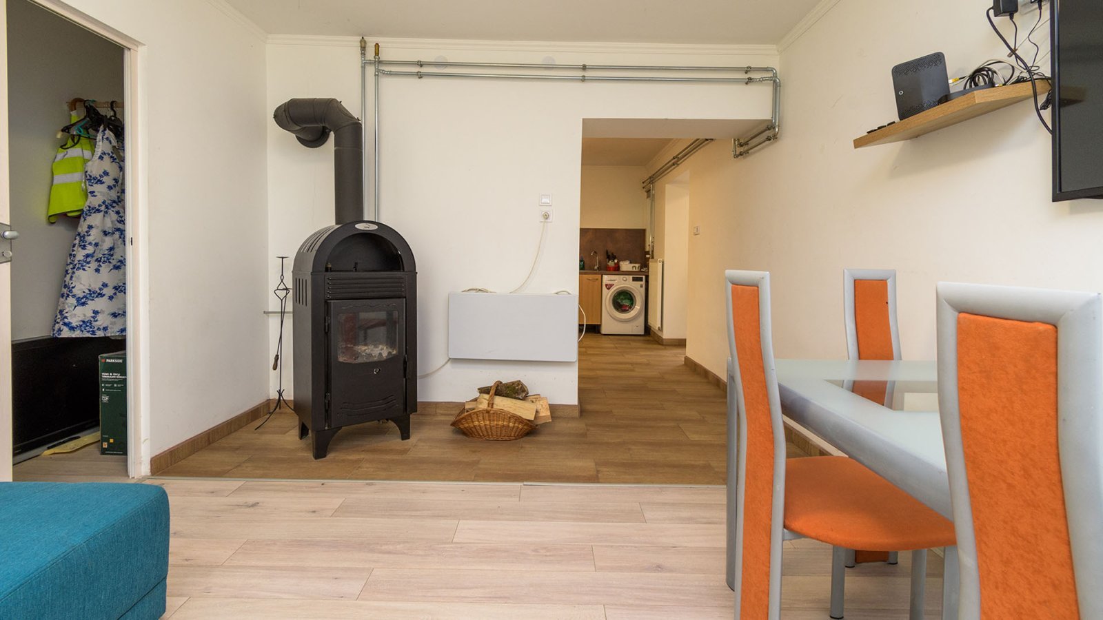 Das Haus verfügt über einen H-Tarif und Drehstromanschluss, was einen zuverlässigen und komfortablen Betrieb gewährleistet. Geheizt wird mit einem gusseisernen Wasserofen, der an kalten Tagen für wohlige Wärme sorgt.