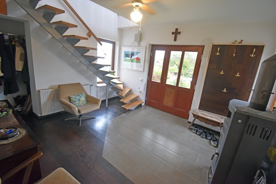 - ein Vorraum mit Holzofen und mit einer offenen Treppe ins Dachgeschoss