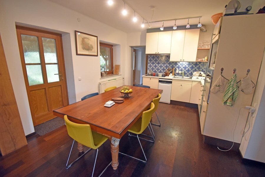 Das Nebengebäude verfügt über ca 120 m² Fläche, aufgeteilt in 4 Räume + Dachgeschoss mit Galerie. Man kann es als Werkstatt und Garage nutzen, oder auch zu einem kompletten Haus mit 2 Appartements ausbauen. Außerdem gibt es eine Räucherkammer.