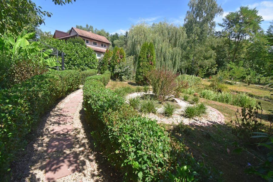 4 km vom Zentrum von Nagykanizsa entfernt, in einer ruhigen, friedlichen Umgebung ist dauerhaft bewohnbares zweigeschossiges Haus mit ca. 700m2 großem See, Insel, Landschaftsgrundstück zu verkaufen.