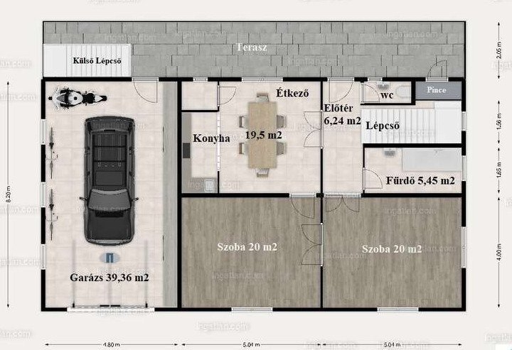 Großzügige Terrasse: 39 m² große Terrasse, zugänglich vom Obergeschoss und über eine Außentreppe - ideal für entspannte Stunden im Freien.