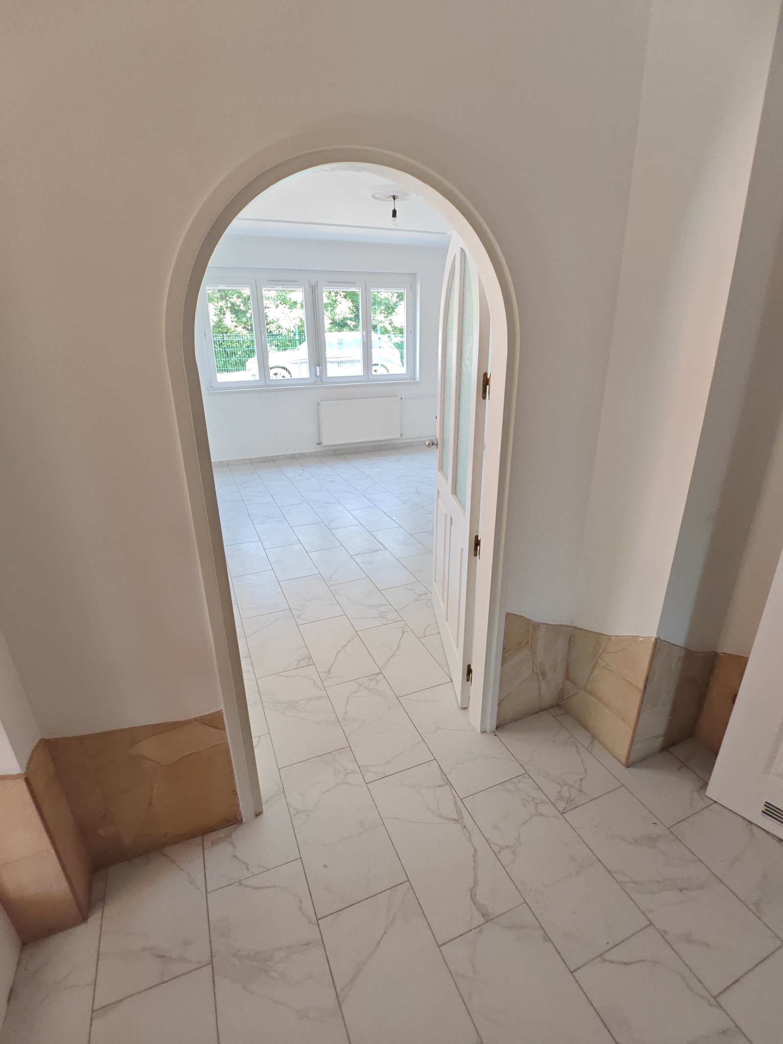 - rechts durch den Flur gelangt man dann in den Bereich Küche (ebenfalls komplett neu) plus Esszimmer