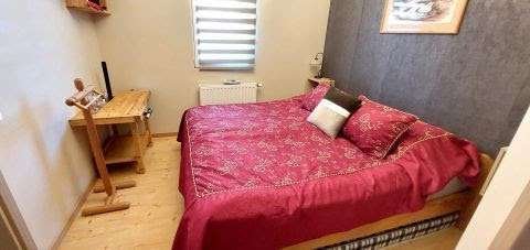 Auf der 50 qm großen oberen Ebene befinden sich 3 Zimmer, ein geräumiges Badezimmer, ein separates WC und ein Kleiderschrank. Die Zimmer haben eine normale Deckenhöhe, keine Dachböden.