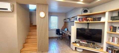 der 100m2 große Teil des Erdgeschosses, der zentrale Teil ist das geräumige 44 m² große Wohnzimmer, das sich im gleichen Raum wie das Esszimmer und die Küche befindet.