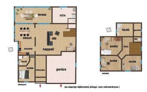 In einer ruhigen, friedlichen Gegend in Nárai steht ein leichtes, zweistöckiges Wohnzimmer + 4-Zimmer-Einfamilienhaus zum Verkauf, das die warmen Farben und den Komfort der mediterranen Atmosphäre bietet.