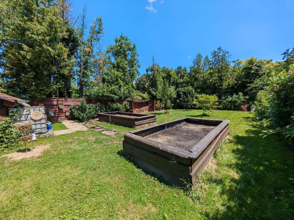 Grundstück und Nebengebäude: Das 911 m² große Grundstück ist schön gepflegt und bietet völlige Ruhe und Intimität, ideal zum Entspannen oder Gärtnern.
