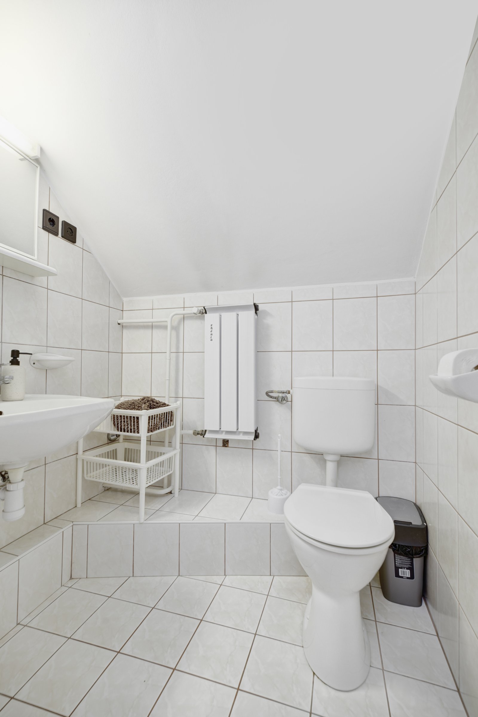 Bad & Gäste-WC: Tageslichtbad mit Wanne, Bidet + separates WC.
