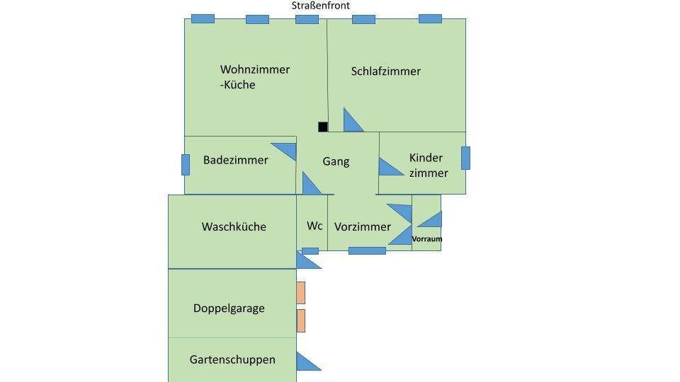 Zum Haus gehört eine Waschküche sowie eine 25 m² große Doppelgarage, von der eines der Tore elektrisch betrieben wird. Direkt daneben befindet sich ein 12 m² großer Gartenschuppen.
