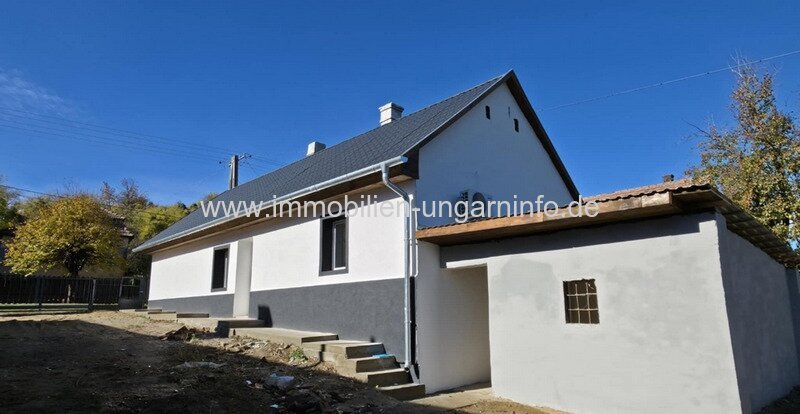 In Szenyér, im Einzugsgebiet des Plattensees, biete ich ein Bauernhaus mit 1445 m² Grundstück zum Verkauf an. Die Grundfläche des Gebäudes beträgt netto 57 m², der angrenzende Lagerraum 17 m². Die Mauern des Hauptgebäudes sind aus Lehmziegeln, der Zustand ist wie auf den Fotos zu sehen. Das Nebengebäude ist aus Ziegeln gebaut.