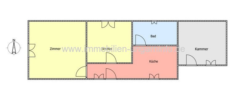 Räume: Flur, 2 Zimmer, Küche, Badezimmer, Abstellraum im Nebengebäude.