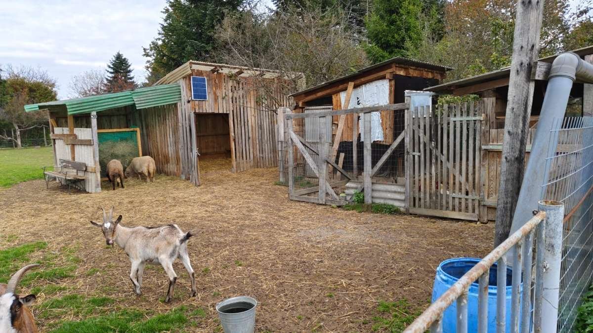 Zurzeit leben 3 Hunde, 4 Ziegen, 3 Schafe und 8 Hühner hier.