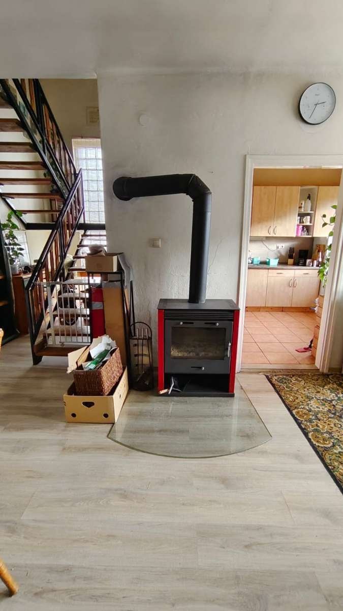 Neuer Holzofen (14 Kw) heizt fast das ganze Haus. Zusätzlich gibt es Elektroheizungen.