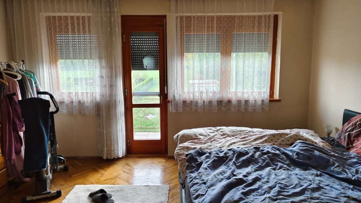 Haus in ruhiger Lage zu verkaufen, 5 Zimmer, 2 Badezimmer, 2 Balkone, 2 Garagen mit Keller, Dachboden und Nebengebäude.