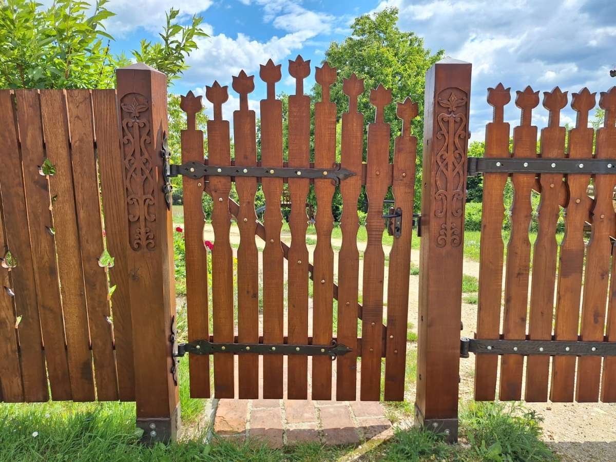 Die einzigartige Schönheit des Hauses zeigt sich in seinem landschaftlich passenden, traditionell lokalen Erscheinungsbild, einem Holzzaun mit Lebensbaum-Motiven, rustikalen, aber modernen, den Anforderungen entsprechenden, komfortablen Innenräumen, einer Sichtbalkendecke und einem künstlerisch gestalteten, multifunktionalen Ofen.