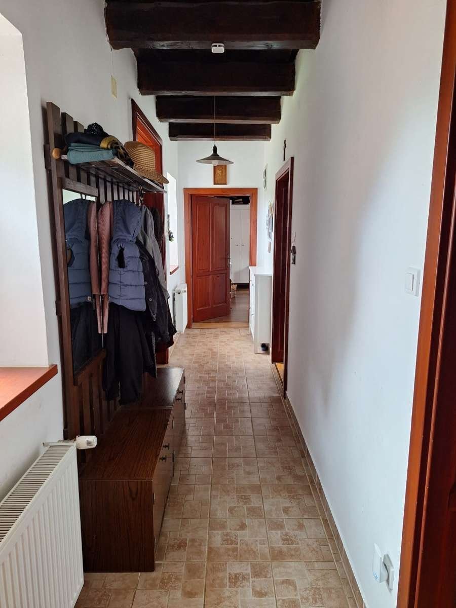 Im Flur, in Richtung Osten, befinden sich zwei weitere Schlafzimmer und das Badezimmer. Dank der 50 cm dicken Ziegelwände, der isolierten Decke und des Bodens, der isolierten Fenster und des funktionierenden Sonnenkollektors hat das Haus einen sehr niedrigen Energiebedarf. Eine Erdgasleitung befindet sich auf dem Grundstück, ebenso gibt es Strom.