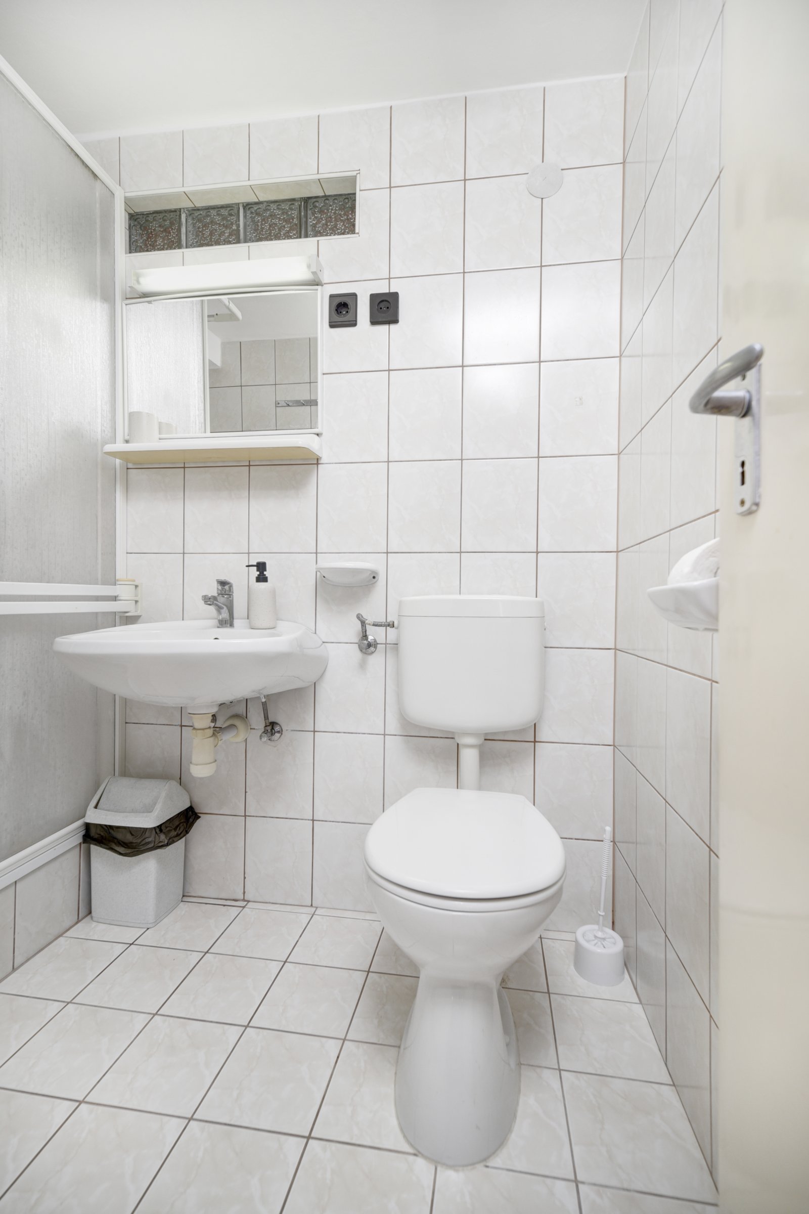 Bad & Gäste-WC: Tageslichtbad mit Wanne, Bidet + separates WC.