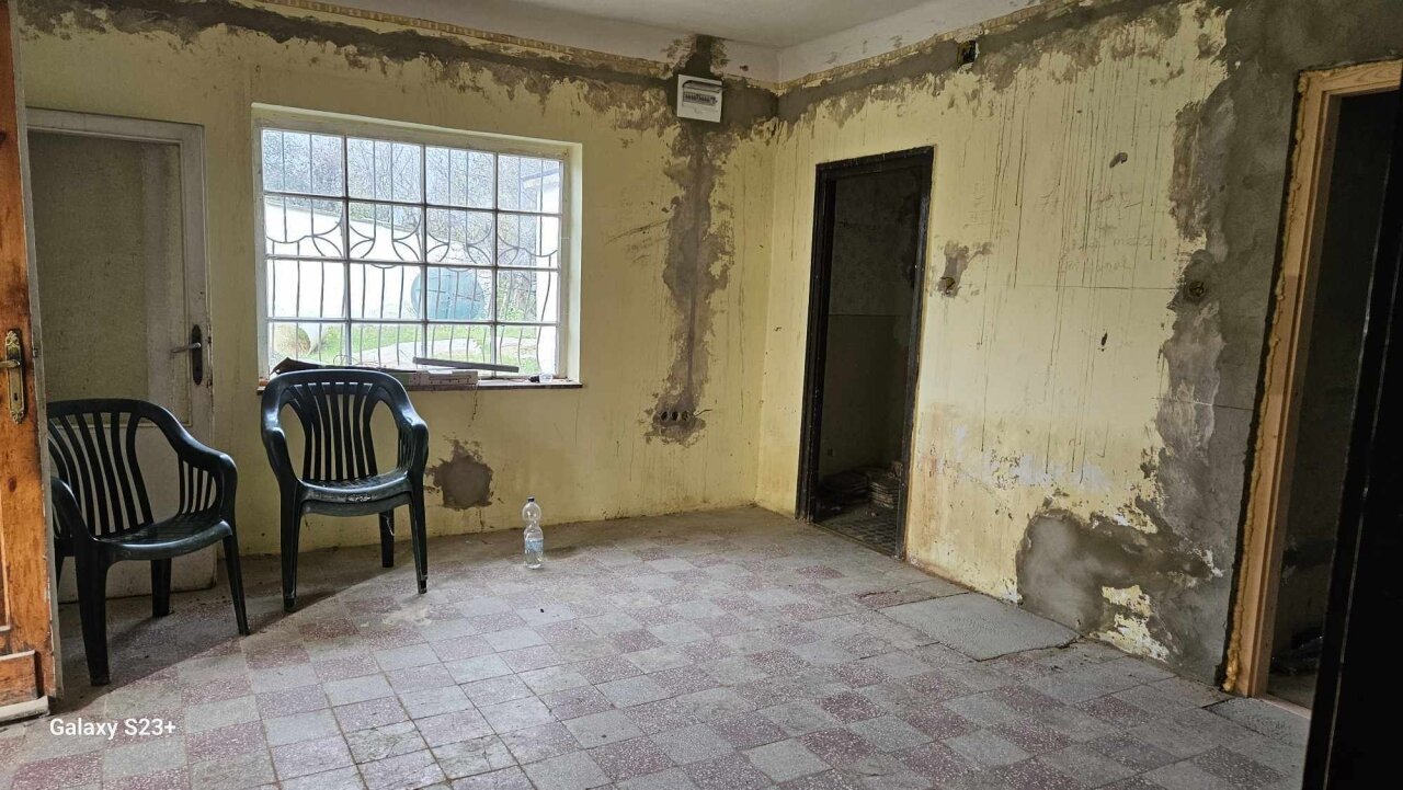 Räume im Gebäude: Flur, Wohnzimmer, 2 Schlafzimmer, Küche, Bad. Im Hof Garage, Keller, Abstellraum. Das Grundstück ist grasbewachsen, mit Obstbäumen und einem Akazienwald am Ende des Grundstücks.