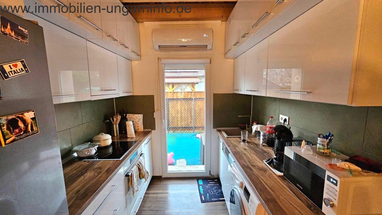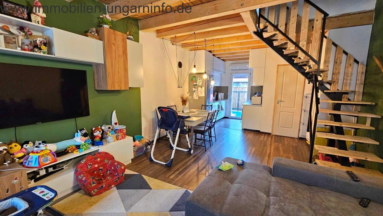 Am Südufer des Plattensees biete ich eine 72 m² große Wohnung in einem Gebäude mit drei Wohnungen zum Verkauf an. Das Gebäude ist ein Neubau; statisch, technisch und ästhetisch perfekt. Es verfügt über eine 15 cm dicke Wandisolierung und Schalldämmung nach den heutigen Anforderungen, so dass es einen minimalen Energiebedarf hat. Räume der Wohnung im Erdgeschoss: geräumiges Wohnzimmer mit amerikanischer Küche, Bad. Obergeschoss: 2 Schlafzimmer und eine Toilette mit Waschbecken.