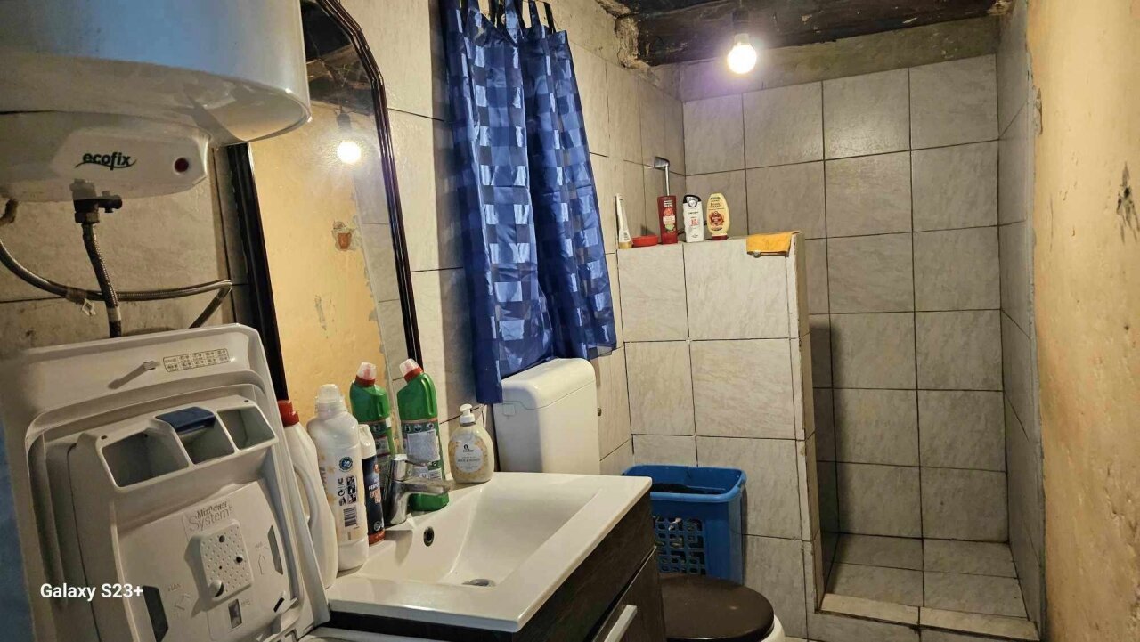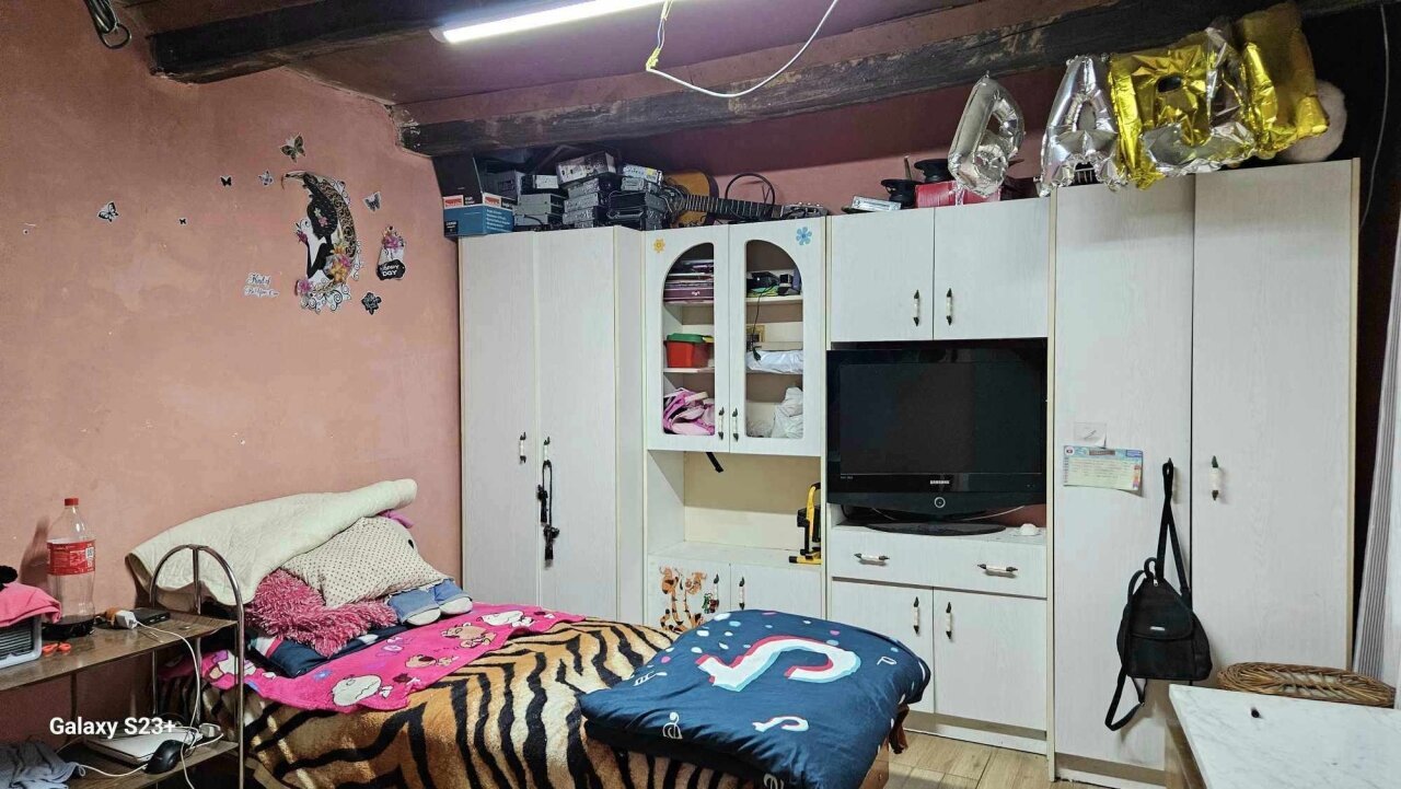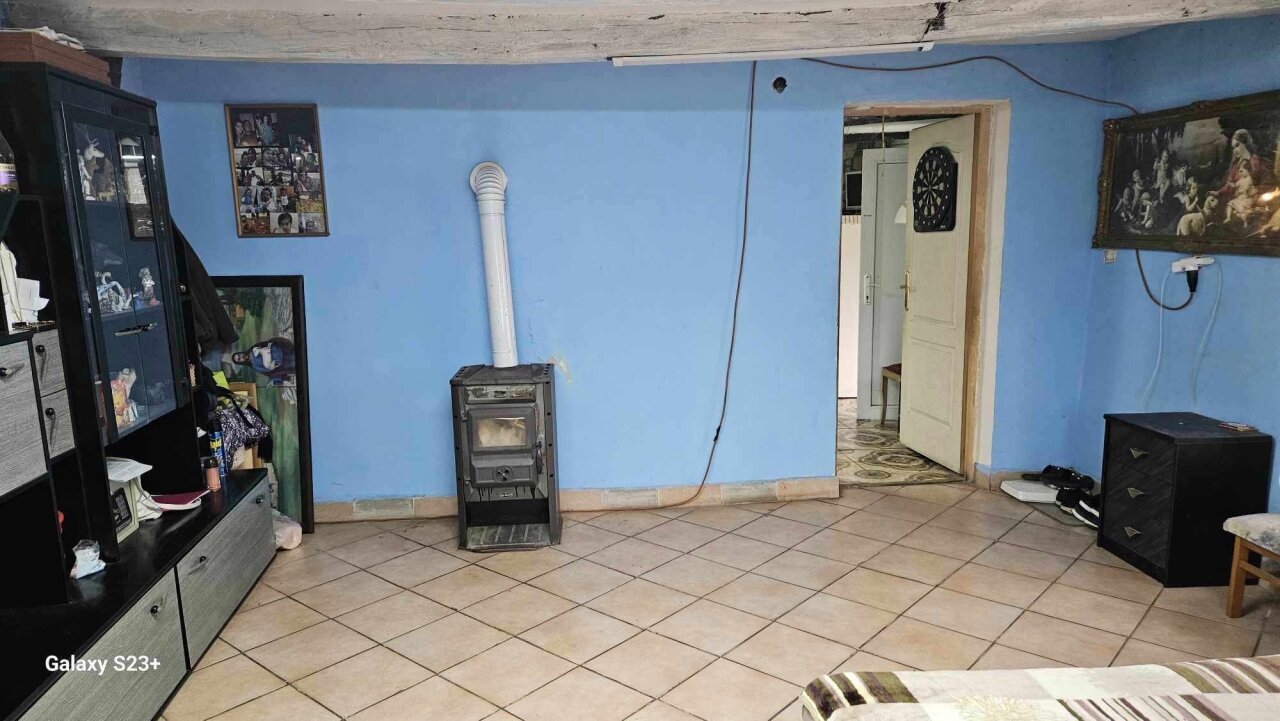 Räume: überdachte Terrasse, Wohnzimmer, 2 Schlafzimmer, Küche, Badezimmer. Nebengebäude mit Holzlager und Garage. Elektrizität, Wasser, Kanalisation mit Abfluss. Heizung mit Holzofen. Der größte Teil des Grundstücks ist bewaldet.
