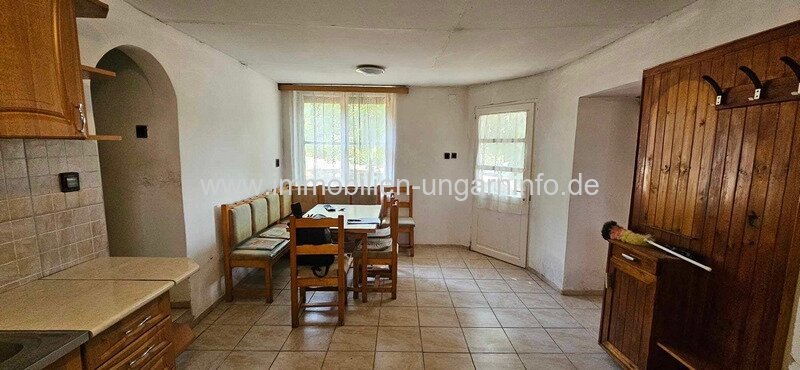 In einem Dorf in der Nähe des Plattensees, zu verkaufen ein freistehendes Haus von 105 m² mit 1150 m² Grundstück. Das Backsteingebäude ist strukturell in gutem Zustand, innen renoviert, teilweise mit neuen Fenstern und Türen. Räume: überdachte Terrasse, 2 Schlafzimmer, Wohnzimmer, Diele, Küche, Speisekammer, Flur, Bad, WC, Abstellraum.