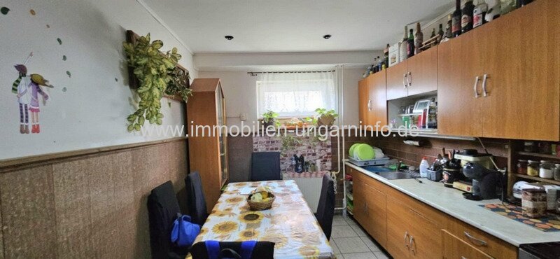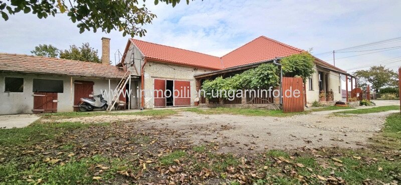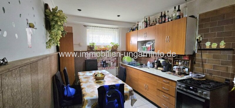 Ich biete zum Verkauf in einer kleinen Stadt im Komitat Somogy ein Einfamilienhaus mit 110 m² Nettowohnfläche und 1188 m² eingezäuntem Grundstück. Das Backsteingebäude ist strukturell in gutem Zustand, vieles wurde in den letzten Jahren erneuert: neues Dach, neue Wasser-, Gas- und Stromleitung. Räume des Gebäudes: geräumige gemütliche überdachte Terrasse, Wohnzimmer, Flur, 4 Schlafzimmer, Küche, Esszimmer, Speisekammer, Bad, WC. Nebengebäude: Sommerküche, beheizte Garage, Heizungsraum, Holzlager, andere Lagerräume. Alle Annehmlichkeiten; Strom, Gas, Wasser, Kanalisation angeschlossen. Heizung mit Gas- und Holzkessel und Kachelofen.
