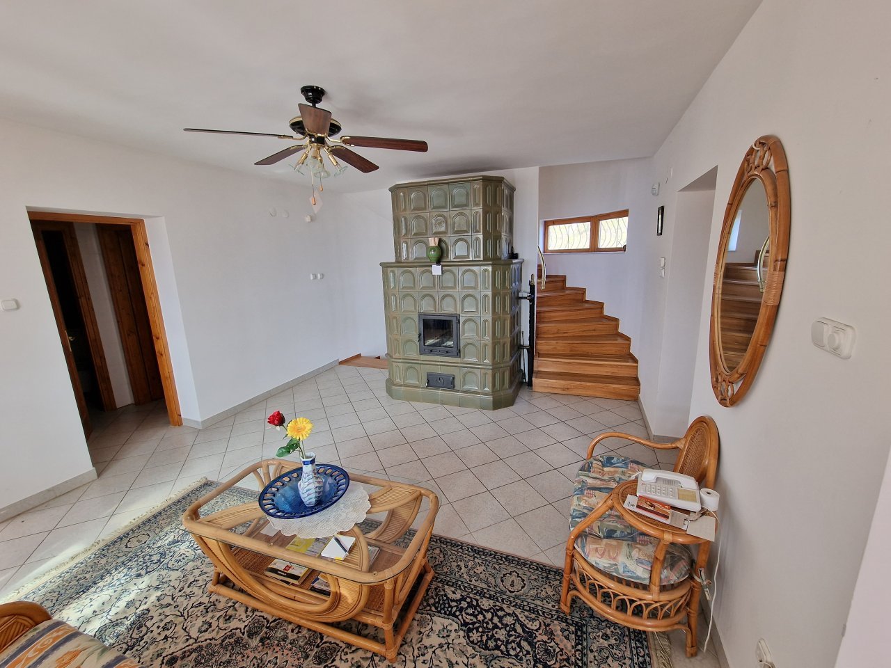 - az ebédlő vagy a télikertbe, vagy közvetlenül a nappaliba vezet a nagy cserépkályhával, mely finom galambkék színében az egész földszintnek egy igazi kastély nemes varázsát adja.