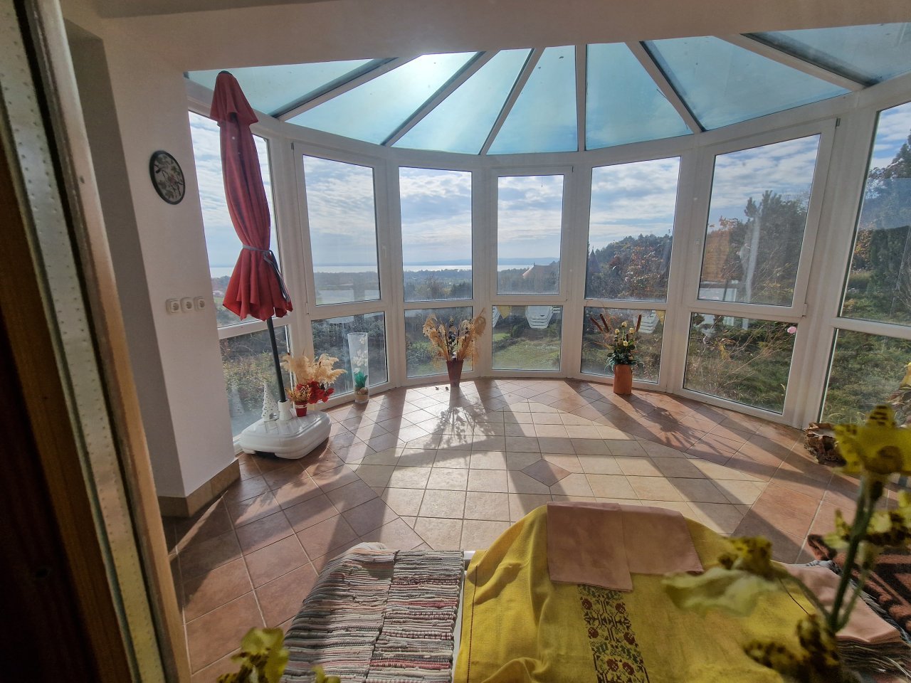 - a konyhából az ebédlőbe nyílik, de közvetlenül a tágas verandára, ahonnan lélegzetelállító kilátás nyílik a Balatonra