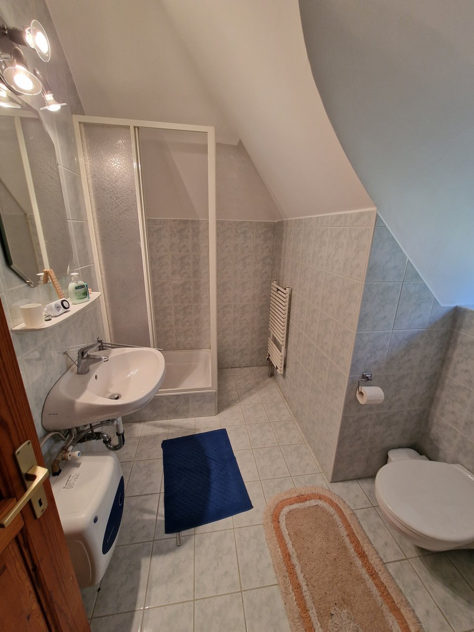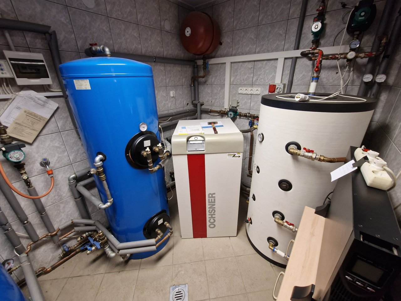 Friss víz, szennyvíz szeptikus tartályon keresztül, nagyfeszültségű áram, fűtés geotermikus hőszivattyúval és cserépkályhával