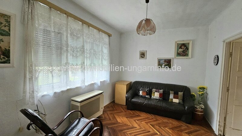 In einer kleinen Stadt im Kreis Zala steht ein Einfamilienhaus mit 60 m² Nutzfläche und einem umzäunten Grundstück von 866 m² zum Verkauf. Das Backsteingebäude ist strukturell in gutem Zustand, das Dach und die Dachkonstruktion wurden kürzlich ersetzt. Es hat traditionelle, flach verglaste Fenster, ein Zimmer hat Parkettboden, das andere Laminatboden. Räume: überdachte Terrasse, Eingangshalle, 2 Schlafzimmer, Küche, Speisekammer, Sommerküche, Abstellraum/Dachboden, Badezimmer. Garage und Geräteschuppen in separatem Gebäude auf der Rückseite des Grundstücks. Auf dem Hof gibt es Obstbäume. Alle Annehmlichkeiten; Strom, Wasser, Kanalisation, Gas angeschlossen. Heizung mit Gaskonvektor und Kachelofen.