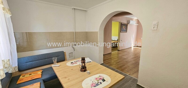 Aus familiären Gründen, dringend zu verkaufen in einem Dorf in der Nähe des Plattensees, ein freistehendes Haus von 75 m² mit einem Grundstück von 2819 m2. Das Backsteingebäude ist baulich in gutem Zustand, innen renoviert. Neue isolierverglaste Fenster, neue Strom- und Wasserversorgung, neue Klimaanlage, teilweise neue Fliesen, frisch gestrichen, neuer Ariston smart wifi Heizkessel.