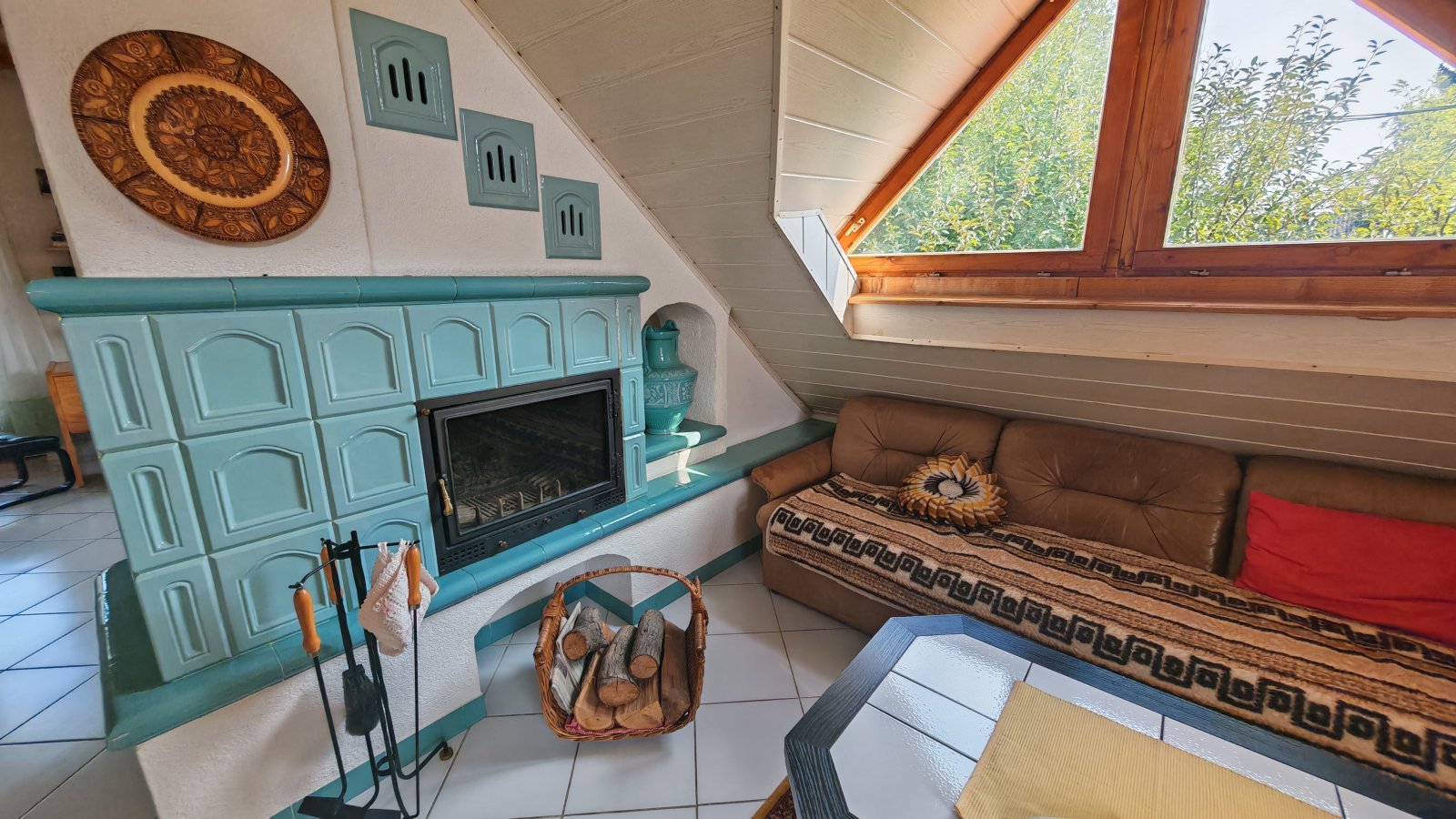 A nappaliban található cserépkályha kellemes meleget biztosít