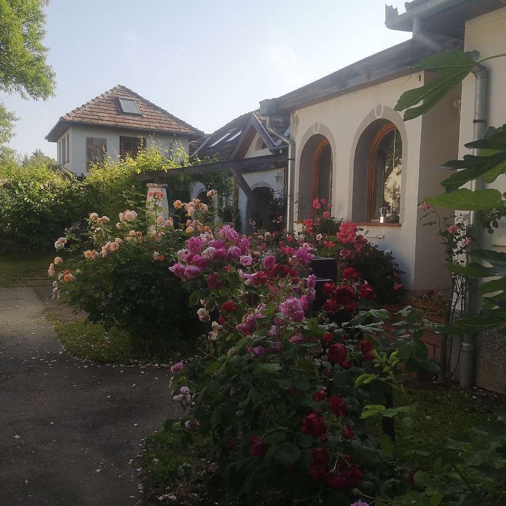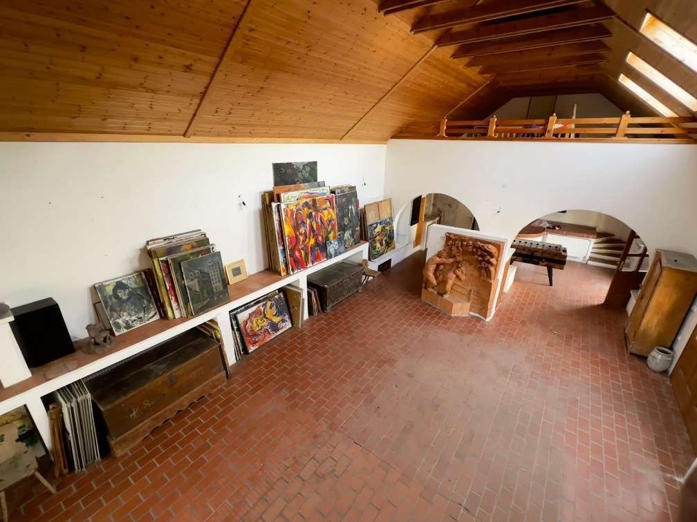 Ez a romantikus művészház a déli hangulatot ötvözi az ötletek bőséges terével. A központi elem a tágas stúdió (kb. 130 m²) - nyitott, világos, és tökéletes festészethez, szobrászathoz, jógához, workshopokhoz vagy kisebb koncertekhez. Három kézzel készített cserépkályha és egy nyitott kandalló teremt hangulatot; két nappali fürdőszoba és vendégmosdó teszi kényelmessé a mindennapokat. A két torony, egy szőlővel befuttatott pergola, valamint a szépen parkosított rózsa- és gyümölcsöskert adja meg a háznak összetéveszthetetlen jellegét.