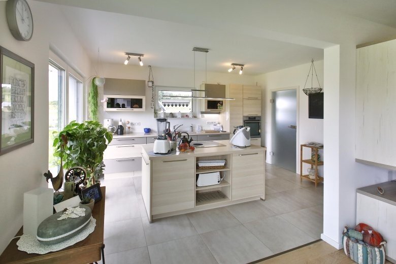 Die in der Anzeige enthaltene Immobilie ist ein schlüsselfertiges Wohnhaus mit 92 m2 und umfasst einen größeren Gemeinschaftsraum mit Wohnzimmer, Esszimmer und Küche, 3 Zimmer, Speisekammer, 2 Badezimmer, Gäste Toilette und einen Vorraum. Das Anwesen verfügt außerdem über eine 30 m2 große Terrasse.