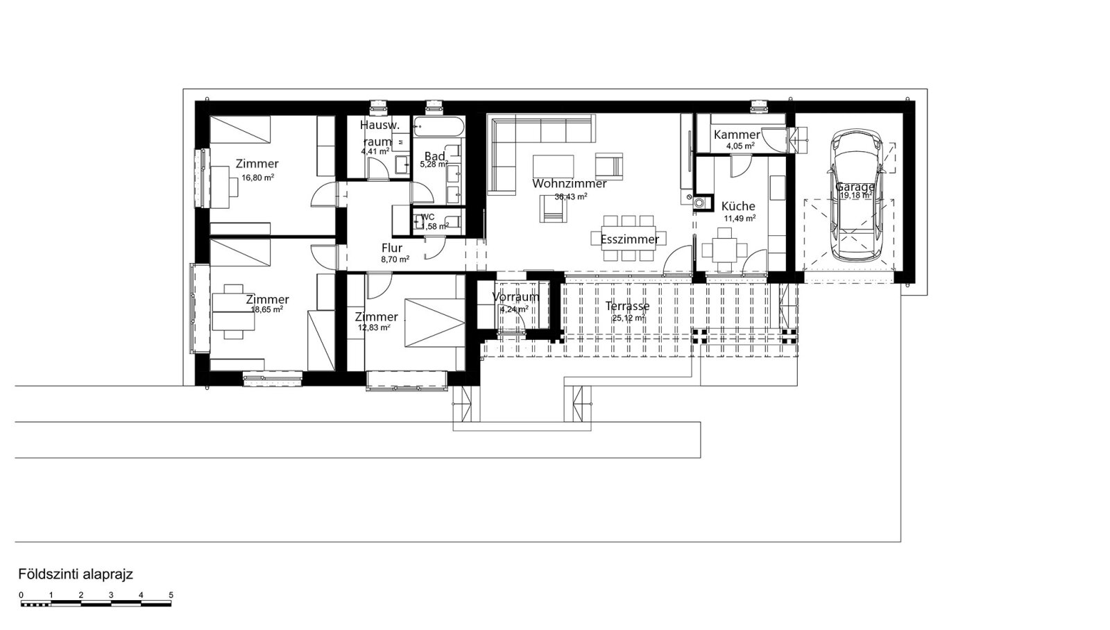 Das Anwesen mit einer Wohnfläche von 124 m2 umfasst einen größeren Gemeinschaftsraum mit Wohnzimmer, Esszimmer und Küche, 3 Zimmer, Speisekammer, Badezimmer, Gäste Toilette, Hauswirtschaftsraum, Vorraum und eine 20 m2 große Garage. Das Anwesen verfügt außerdem über eine 30 m2 große Terrasse.