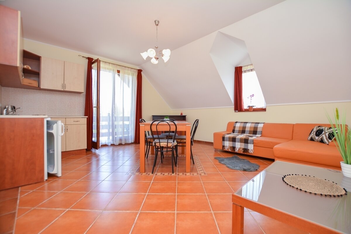 Ständig instand gehaltene Wohnung in sehr gutem Zustand im Obergeschoß eines Mehrfamilienhauses mit 4 Wohnungen ist zu verkaufen. Die Wohnung ist bei Bedarf sofort beziehbar. Der angegebene Kaufpreis ist vollmöbliert zu verstehen. Die Wohnung wird mit geotermischer Energie durch Fußbodenheizungssystem geheizt, bzw. der Ausbau des H-Tariffsystems ist im Kaufpreis inbegriffen. Der Wohnpark, wo sich die Wohnung befindet, liegt inmitten wunderschöner Natur, gleich neben dem Wald. Der Golfplatz in Zalacsány liegt 1 km entfernt, das Thermalbad von Kehidakustány 2 km, Hévíz 12 km, der Plattensee 20 km entfernt. Für Ferienhaus oder für Investition ist dieses Anwesen ein ausgezeichnetes Angebot!