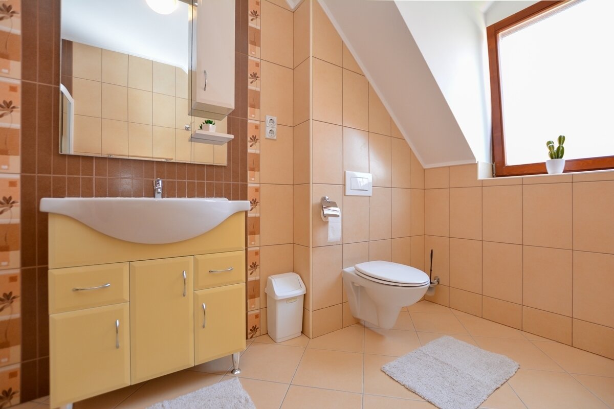 Fußbodenbeläge: Laminat, Keramikplatten.