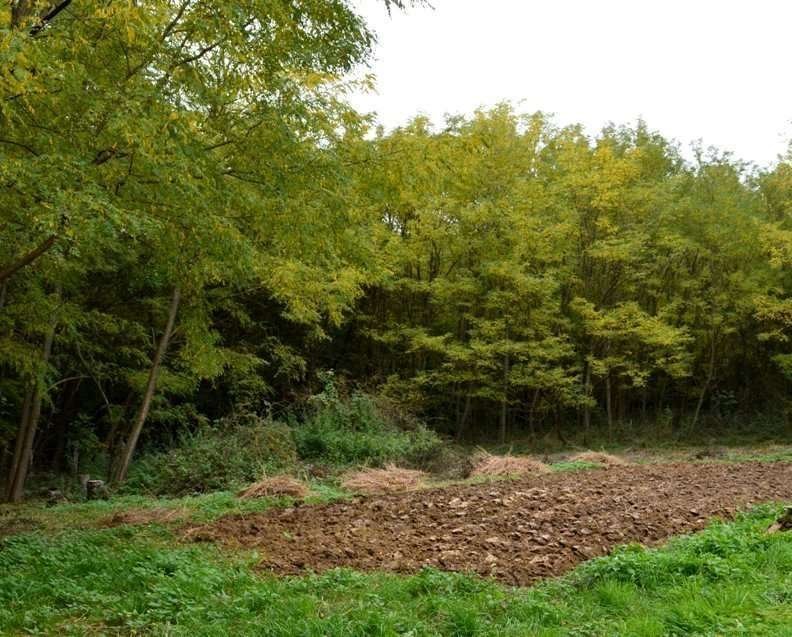 Idilli fekvésű telek erdő szélén. Zsákutca, nincs forgalom. Körülbelül benőtt növényzet, egyetlen ház sincs a láthatáron. Hét régi házból álló kis település, melyek közül csak az egyikben lakik egy 80 éves asszony. Nincs csatorna; egy nagy vastartályt ástam be. A telek rusztikus, akácoszlopos kerítéssel van körülvéve. Körülbelül 3000 m² akácfák (árnyékosak és tüzelőanyagot biztosítanak), 200 m² veteményeskert, a többi pedig rét.