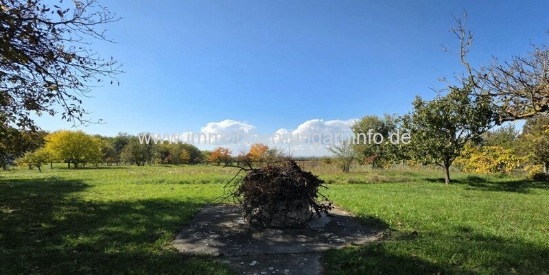 Doppeltes Grundstück, zwei separate Flurstücke. Das hintere Grundstück ist 2857 m² groß und mit Rasen bepflanzt. Darauf befinden sich ein kleiner Backsteinbau und ein Brunnen.