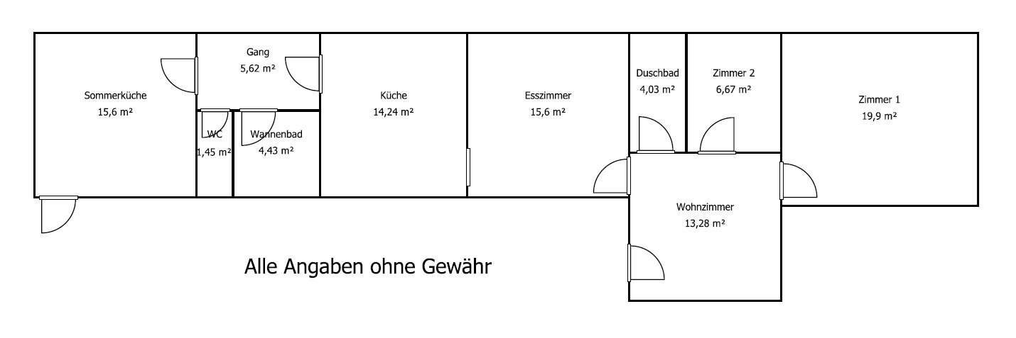 Das Haus kommt mit ca. 100 m² Wohnfläche die sich auf den Eingang, einem Wohnzimmer, einem Schlafzimmer, einem Gästezimmer, einem Duschbad, einem Esszimmer, der Küche, einem Abstellraum, einem Wannenbad sowie einem Gäste WC und einer Sommerküche aufteilt.