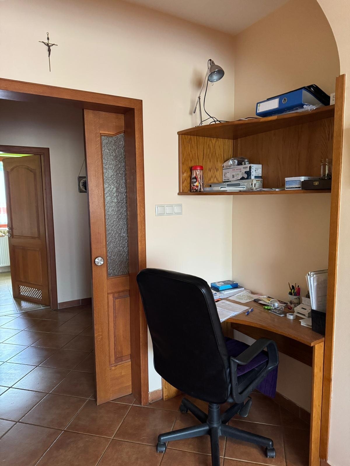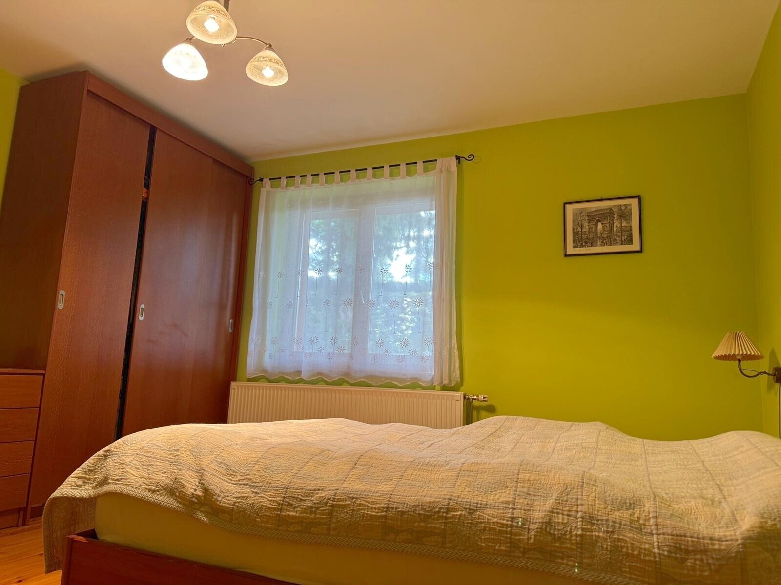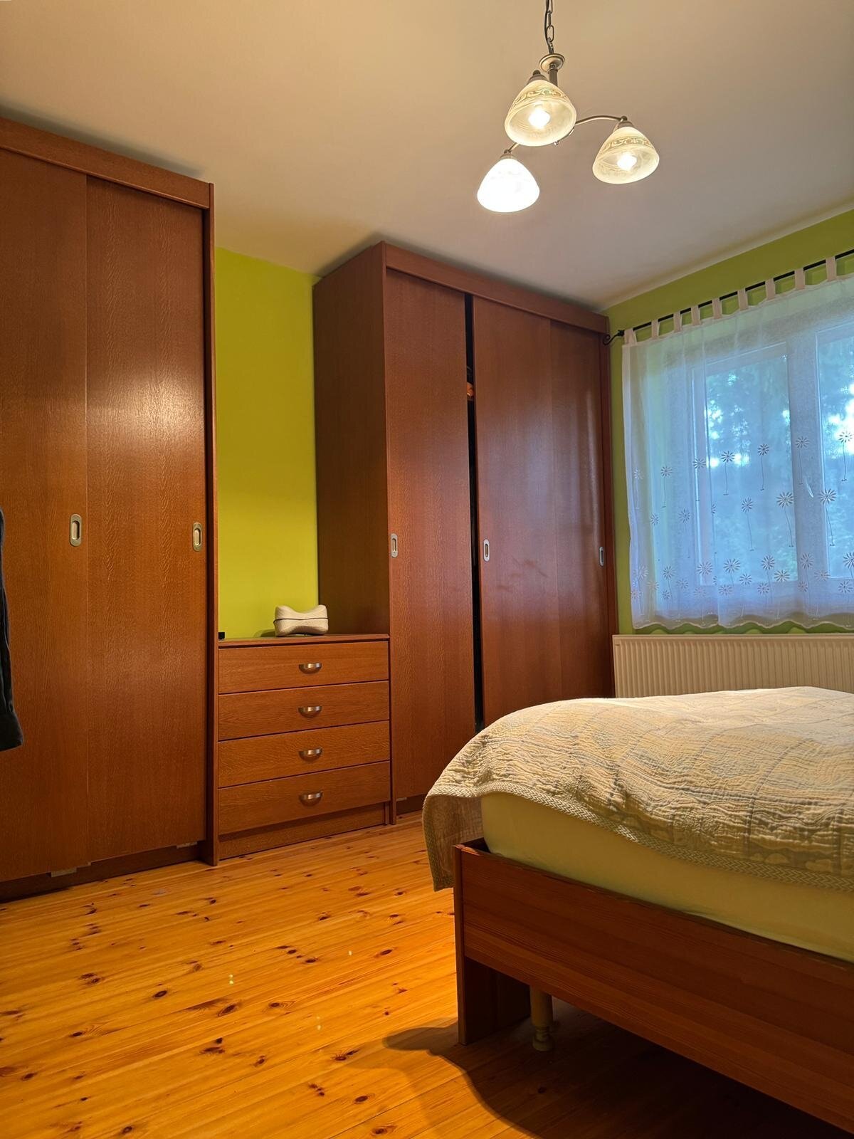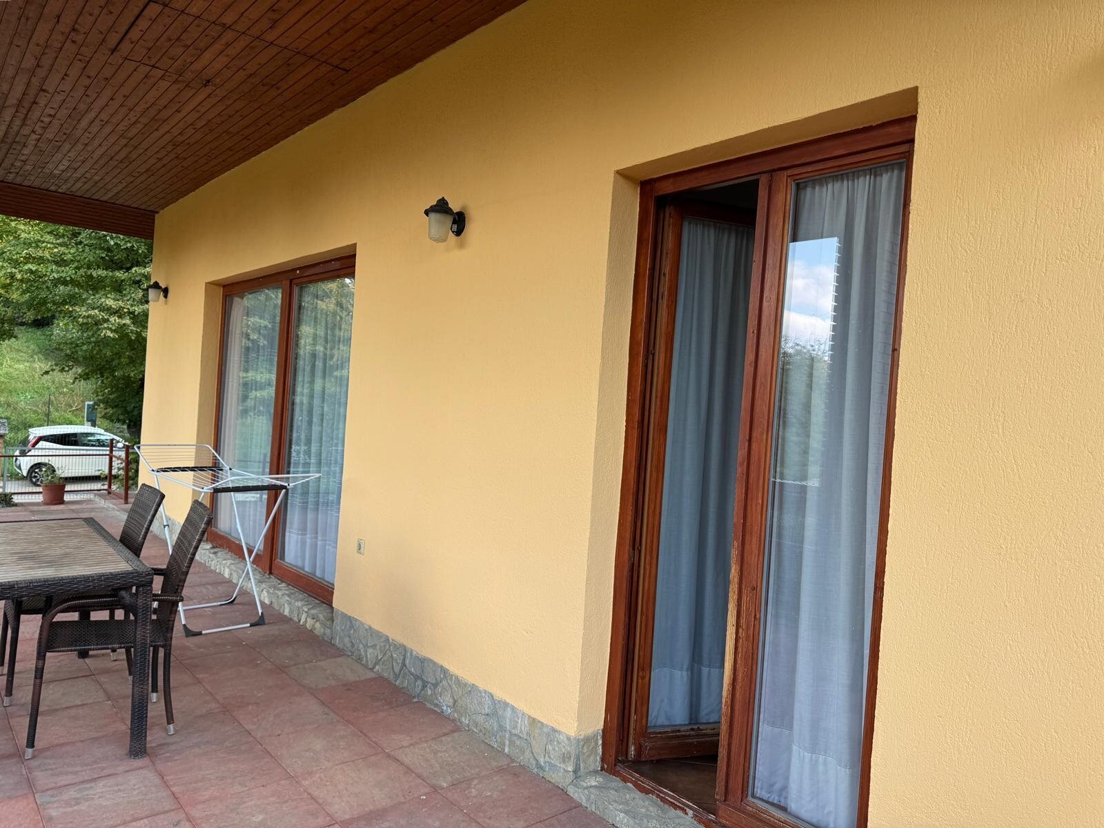 Es verfügt über drei Zimmer mit separatem Eingang, ein geräumiges Wohnzimmer, eine helle Küche, Heizraum sowie einen großen Keller mit drei Räumen, von denen einer als Garage genutzt werden kann. Der Keller ist sowohl vom Haus als auch vom Garten aus zugänglich und mit Heizung, Wasseranschluss, Dusche und WC ausgestattet, was ihn auch für Wohnzwecke, Werkstatt oder gewerbliche Nutzung geeignet macht.