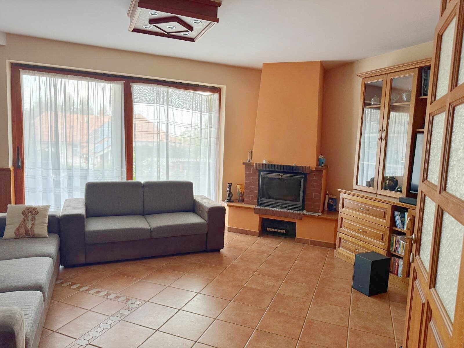 Das Haus wird mit Fußbodenheizung, Gaskessel und einem Kamin beheizt. Die teilweise maßgefertigten, hochwertigen Einbaumöbel schaffen zusammen mit dem Kamin im Wohnzimmer eine besonders gemütliche Atmosphäre. Einige Fenster und Türen sind aus Buche und Eiche gefertigt, die Fensterläden bestehen ebenfalls aus Holz, und alle Fenster sind wärmeisoliert und mit Insektenschutzgittern versehen.