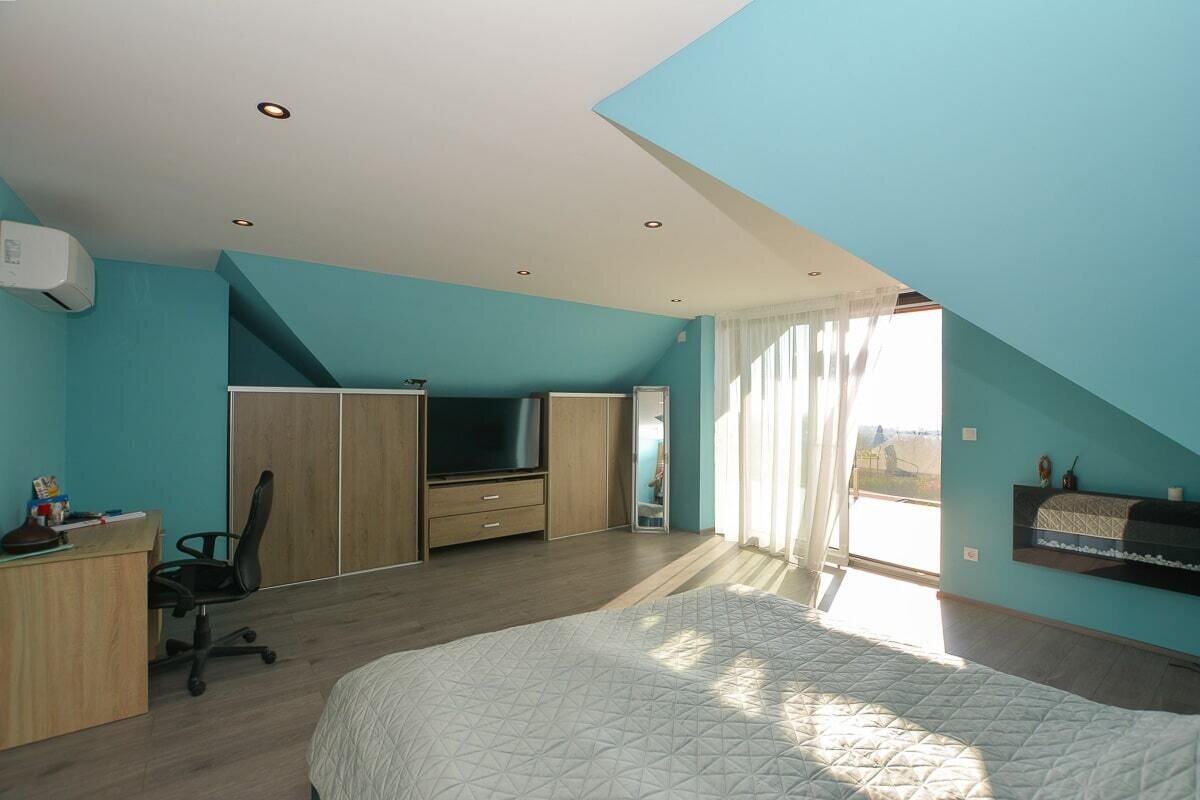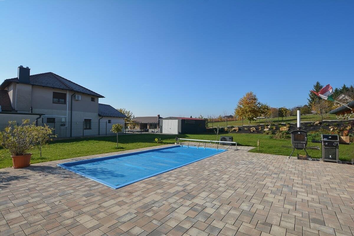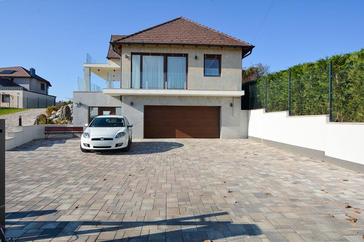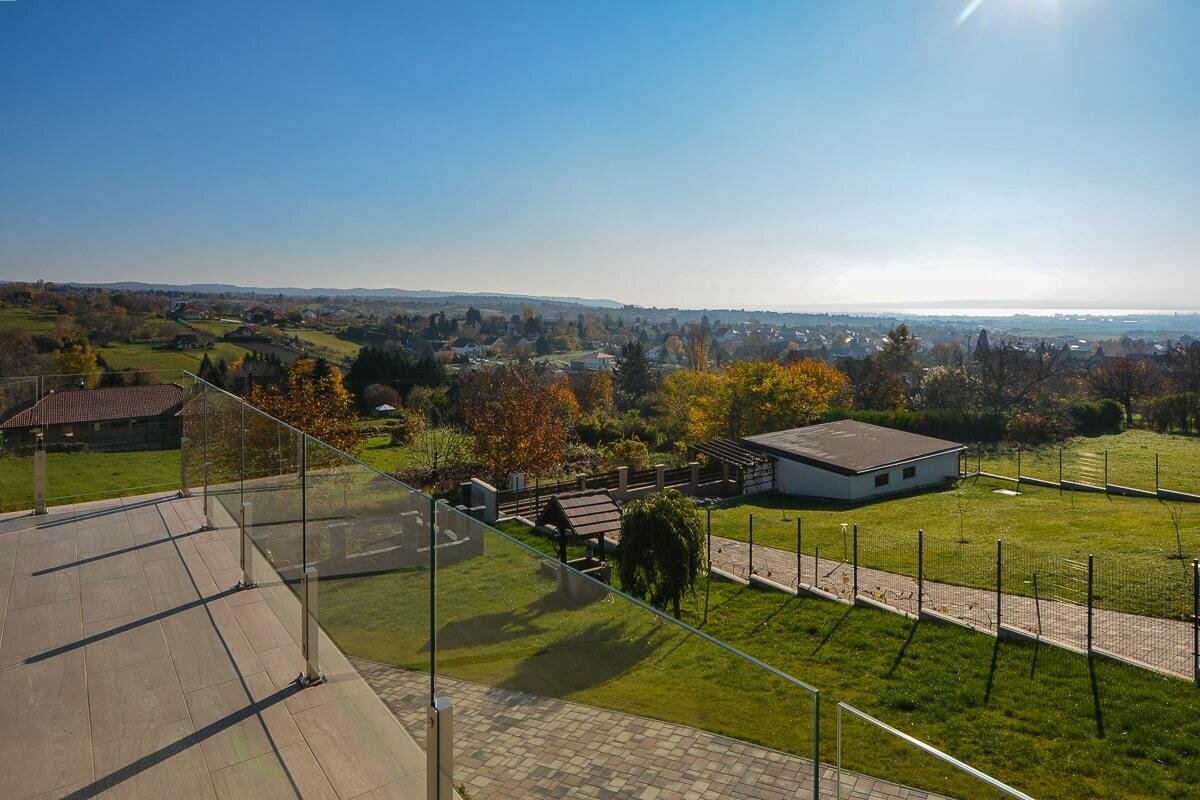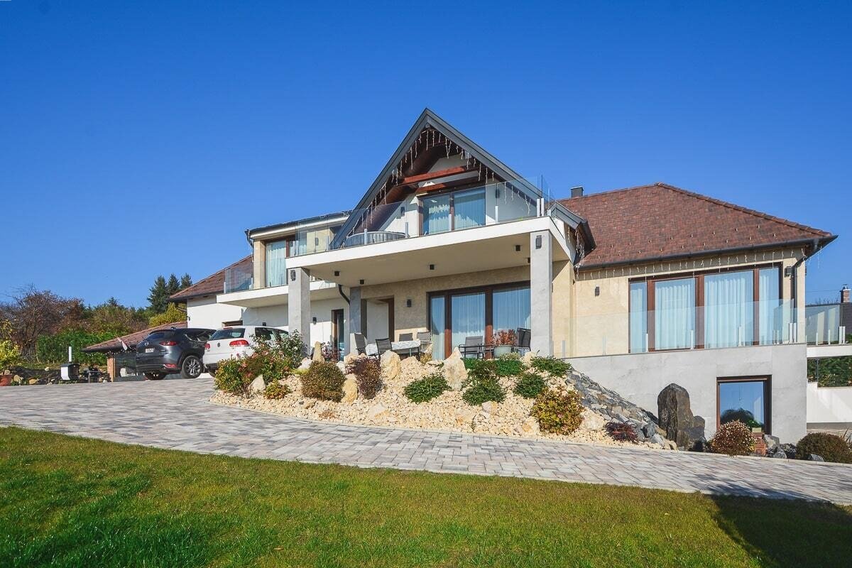 Zental gelegen in Cserszegtomaj ist dieses Einfamilienhaus gebaut auf einem Grundstück mit unbestörtem und unbebaubarem Panoramablick ist zu verkaufen. Das Haus hat 3 Ebenen, im Kellergeschoß sind Hobbyräumen, Sauna, Fitnessraum, Weinstube geeignet für Freundestreffen, und Garage für 3 PkWs vorhanden. Auf dem Wohnebene befinden sich ein geräumiges Wohnzimmer, Küche, mehrere Schlafzimmer und Badezimmer. Das Haus ist von großen Räumlichkeiten geprägt. Eine süd-östlich ausgerichtete überdachte und offene Terrasse öffnet sich von der Küche. Das Dachgeschoß kommt auch mit weitläufigen, sehr gut nutzbaren Räumlichkeiten mit Ausgang zur Terrasse. Von der Terrasse im Erdgeschoß und im Dachgeschoß eröffnet sich ein unbestörtes Panoramablick auf den Plattensee. Das Grundstück ist gepflegt, es kommt mit einer Sommerküche + Hobbyraum, und mit einem beheizbaren Pool. Für ständigen Wohnsitz ist dieses Haus ideal. Das Haus wurde aus Qualitätsmaterialien errichtet, ein sehr seltenes Angebot.