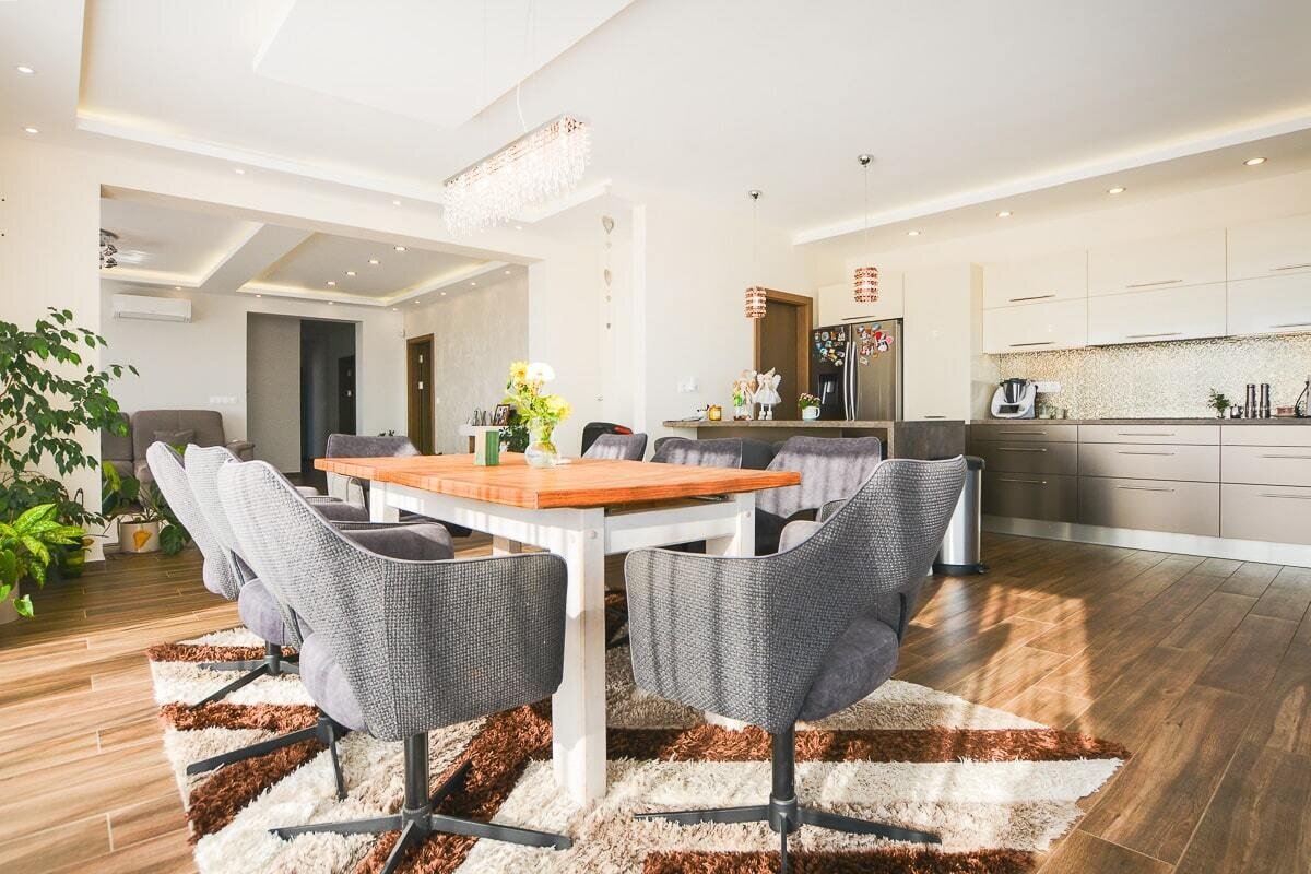 EG: Wohnzimmer 28,32 qm, Essraum + Küche 35,13 qm, Speisekammer 5,91 qm, WC 2,80 qm, Hauswirtschaftsraum 4,64 qm, Dusche + Wc 3,68 qm, Schlafzimmer 12,18 qm, Schlafzimmer 15,12 qm, Diele 8,23 qm, Garderobe 5,15 qm, Badezimmer + Wc 9,01 qm, Vorraum 6,64 qm, Terrasse 27,07 qm, Terrasse 19,11 qm, Hobbyküche 30 qm.