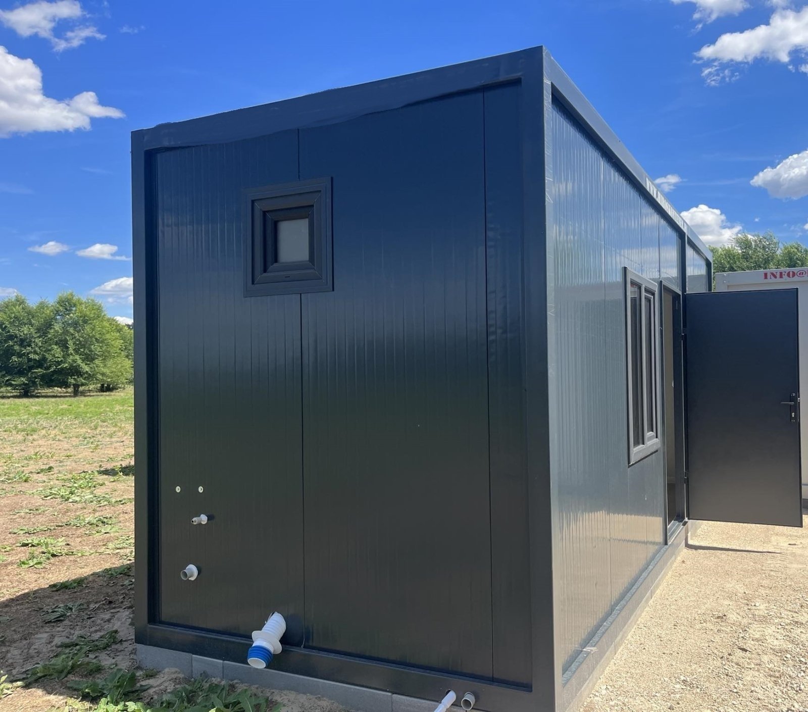 Mindkettőhöz fürdőszoba (zuhanyzó, WC, mosdó) és konyhai mosdó tartozik. Az elektromos csatlakozások és a világítás benne van az árban. Csak pontszerű alapozás szükséges. Nem használt, újszerű.