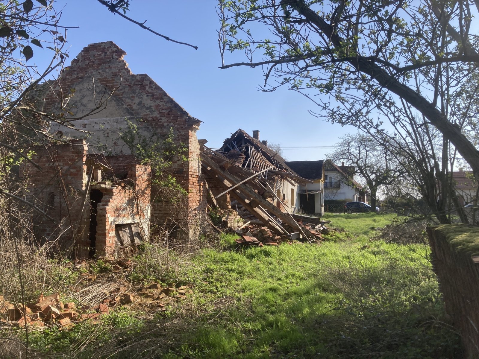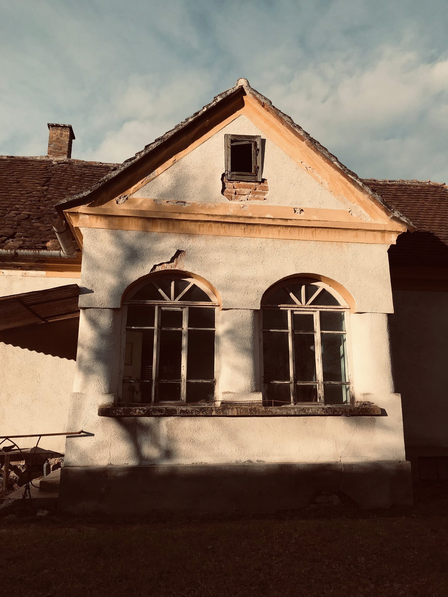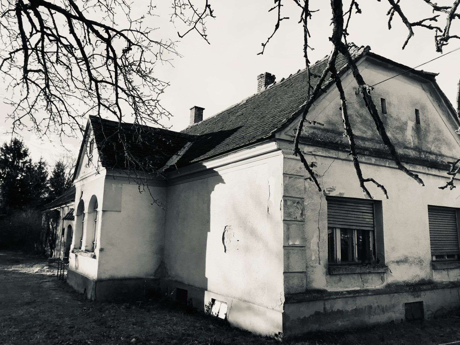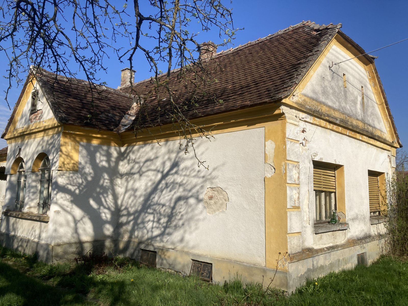 Az optimális elrendezésű (3 szoba, konyha, kamra, előszoba) épület téglafalakkal és téglaalapozással, stukkó mennyezettel és 100 m² lakótérrel (részben alápincézve) rendelkezik. Sajnos a lakótérrel közvetlenül szomszédos korábbi melléképületek (istálló, kocsiszín, műhely) tetőszerkezete a közelmúltbeli zord időjárás miatt összeomlott. Az épület jelenleg lakhatatlan. A lakótér megőrzése érdekében sürgős felújításokra van szükség (amennyiben az új tulajdonos kívánja).